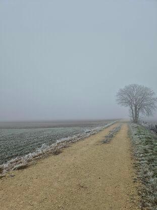 Espace à l'arrière de notre maison où nous promenons les chiens.