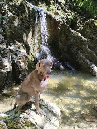 - Shenzi, Braque de Weimar de 1an, femelle non stérilisé. Elle est très sociable avec les autres chiens, nous faisons donc régulièrement des balades avec d'autre chiens comme vous pouvez le voir sur les photos. Étant une race assez active🤪, nous ne manquons pas d'imagination pour l'occuper. On lui donne au moins une fois par jour des friandises à mastiquer, tapis de lèche... Etc